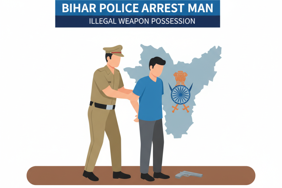 Saralnama Bihar police arrested Shubham Kumar Kamat in Madhubani district. They found an illegal country-made pistol and two live bullets in his house in Mainhi… Read More »Bihar Police Arrest Man for Illegal Weapon Possession