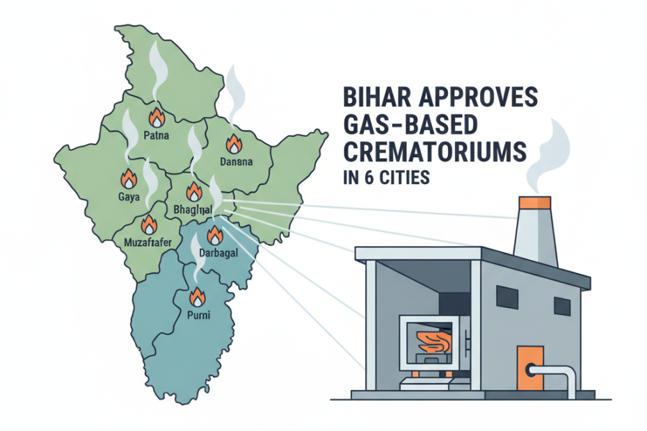 Saralnama Bihar government approved building gas-based crematoriums in Saharsa, Patna, Gaya, Chhapra, Bhagalpur, and Begusarai. Chief Minister Nitish Kumar's cabinet meeting gave the go-ahead. Isha… Read More »Bihar Approves Gas-Based Crematoriums in 6 Cities