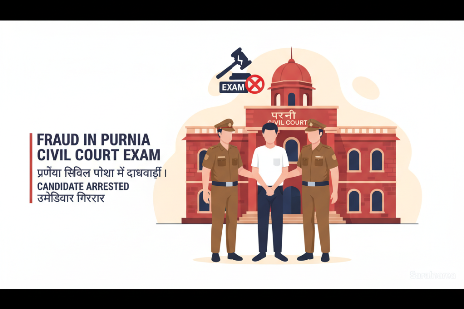 Saralnama को पूर्णिया में बिहार सिविल कोर्ट स्टाफ भर्ती परीक्षा में फर्जीवाड़ा पकड़ा गया। शशि भूषण ने लिखित परीक्षा में अतुल कुमार नाम के स्कॉलर… Read More »Fraud in Purnia Civil Court Exam: Candidate Arrested